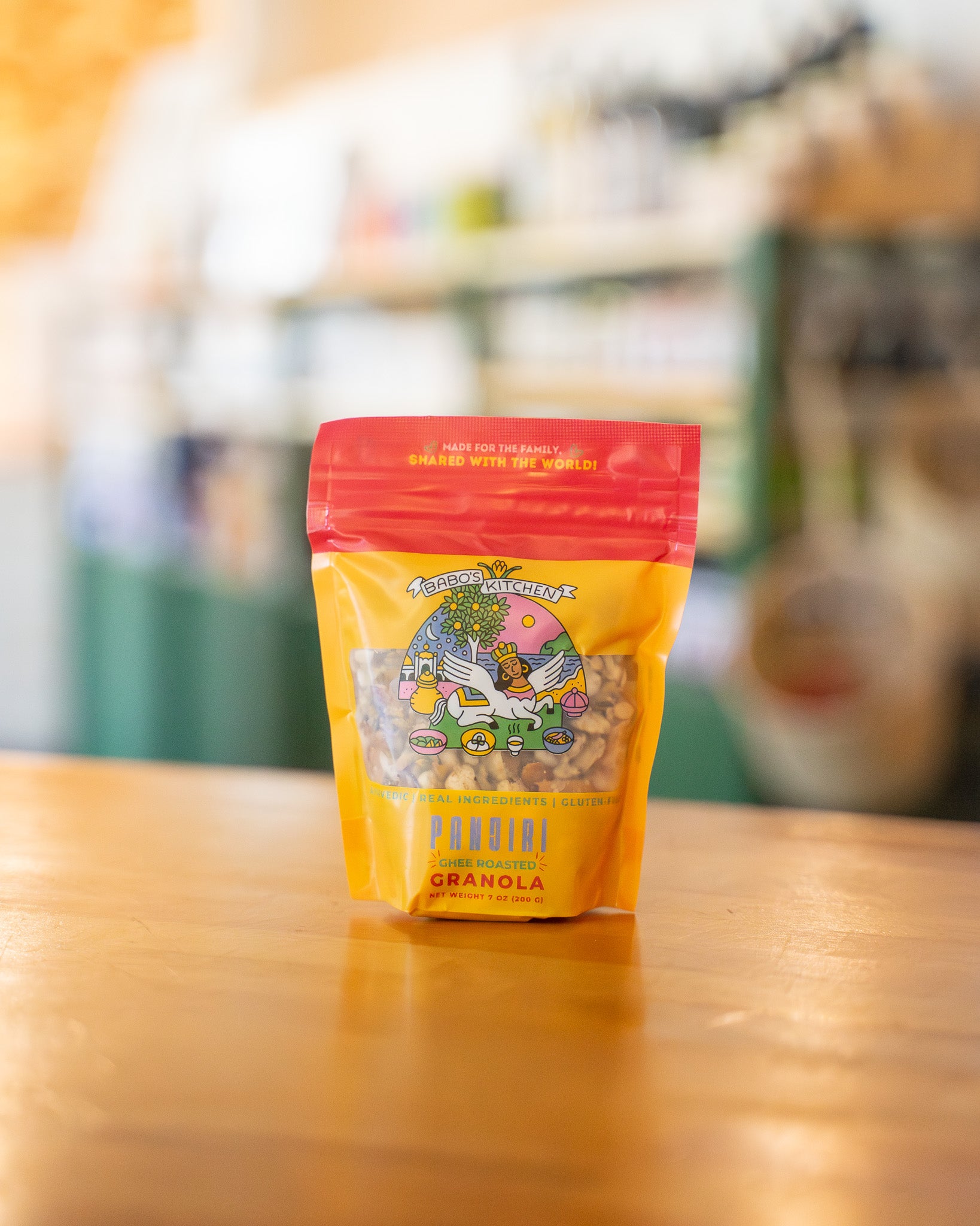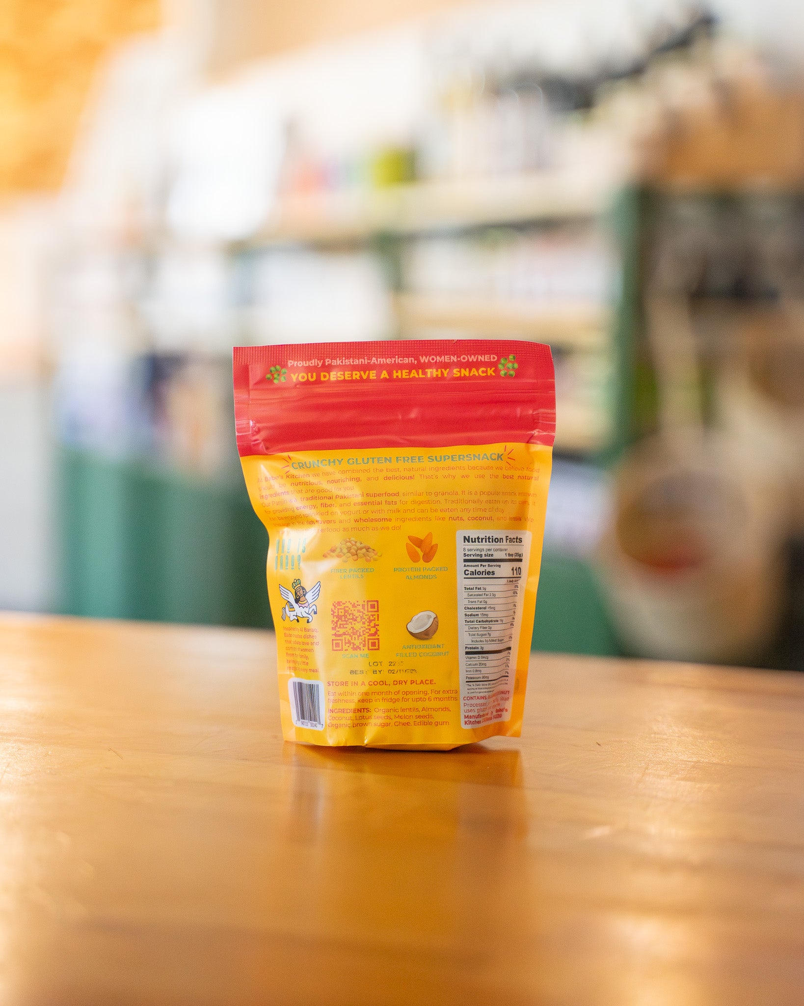This crunchy, gluten-free snack is a tasty, rich energy booster. Enjoy a spoonful daily for a quick pick-me-up—mix it into yogurt, ice cream, or warm milk for a delicious, crunchy treat! Ghee roasted, and oh so so good!