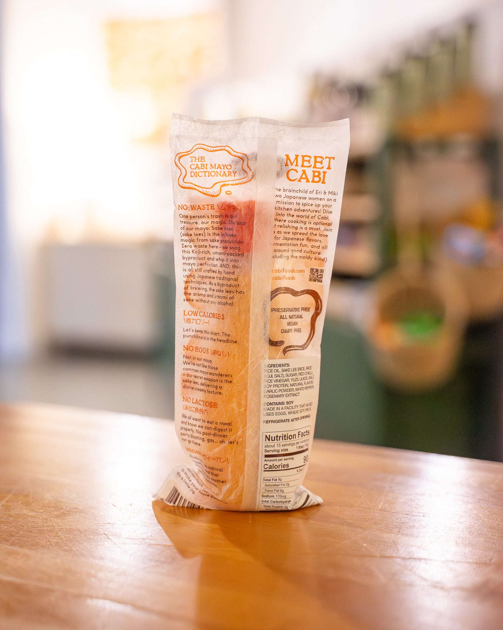 Discover a unique and delicious Japanese Spicy Mayo from Cabi. Made from sake lees, a nutrient-rich byproduct of sake brewing, this plant-based spread delivers bold flavor without any guilt! Whether slathered on sandwiches, drizzled over sushi, or used as a dip, its creamy texture and perfect spicy kick will elevate any dish. Crafted through over 20 rounds of meticulous testing, this mayo is low in calories, free from eggs, dairy, and preservatives - providing a clean and innovative option without sacrificing taste. Experience the perfect blend of traditional and modern with Cabi Spicy Mayo!