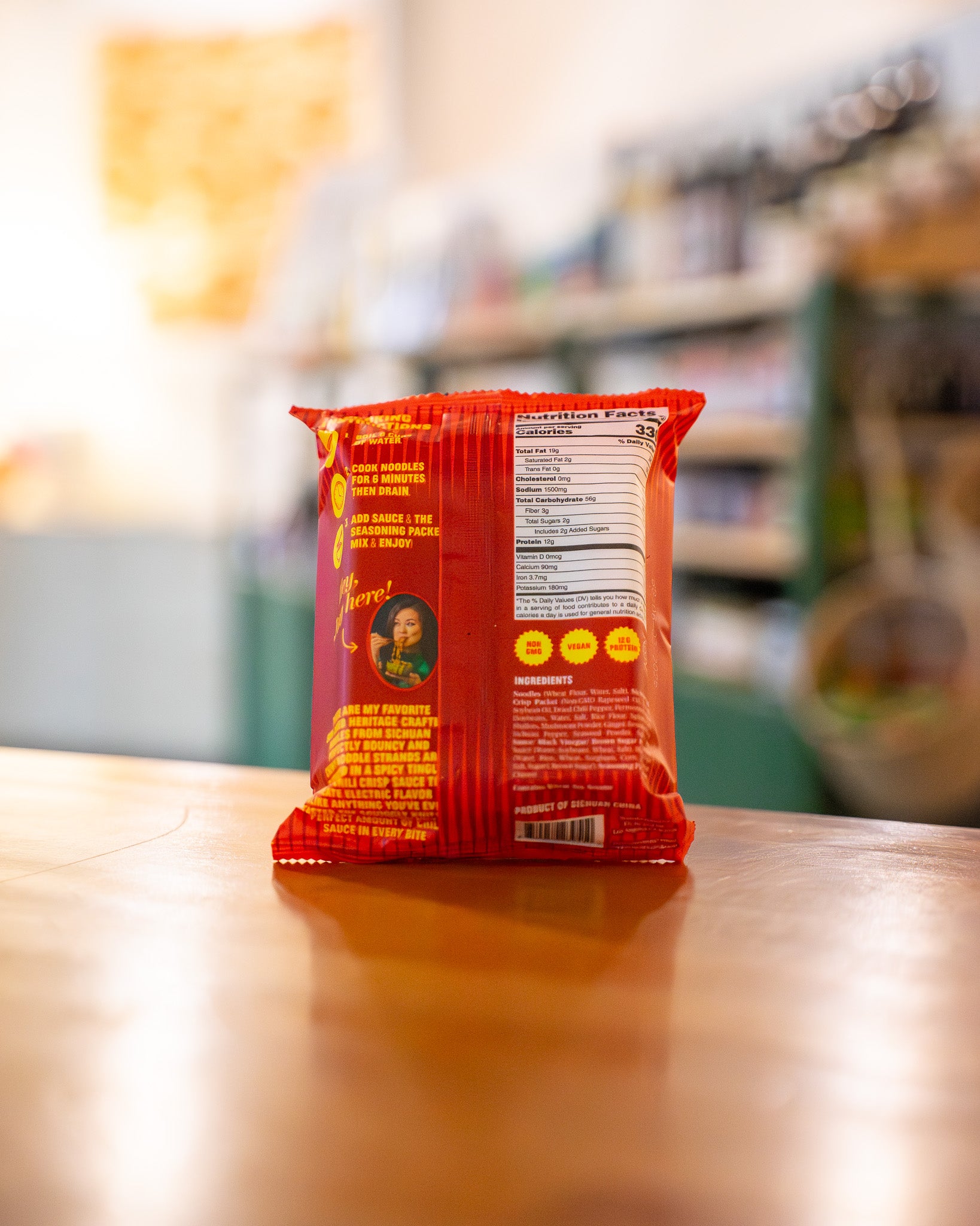 Ready in 6 minutes, these perfectly bouncy and chewy noodle strands are slathered in a spicy, tangy chili crisp sauce to create electric flavor unlike anything you’ve ever tasted. The sun-dried, noodle shape holds the perfect amount of chili sauce in every bite. With nothing artificial, these non-GMO vegan noodles have 12g of protein to keep you satisfied. Just boil in hot water for 6 minutes, drain, add sauce packets and enjoy.