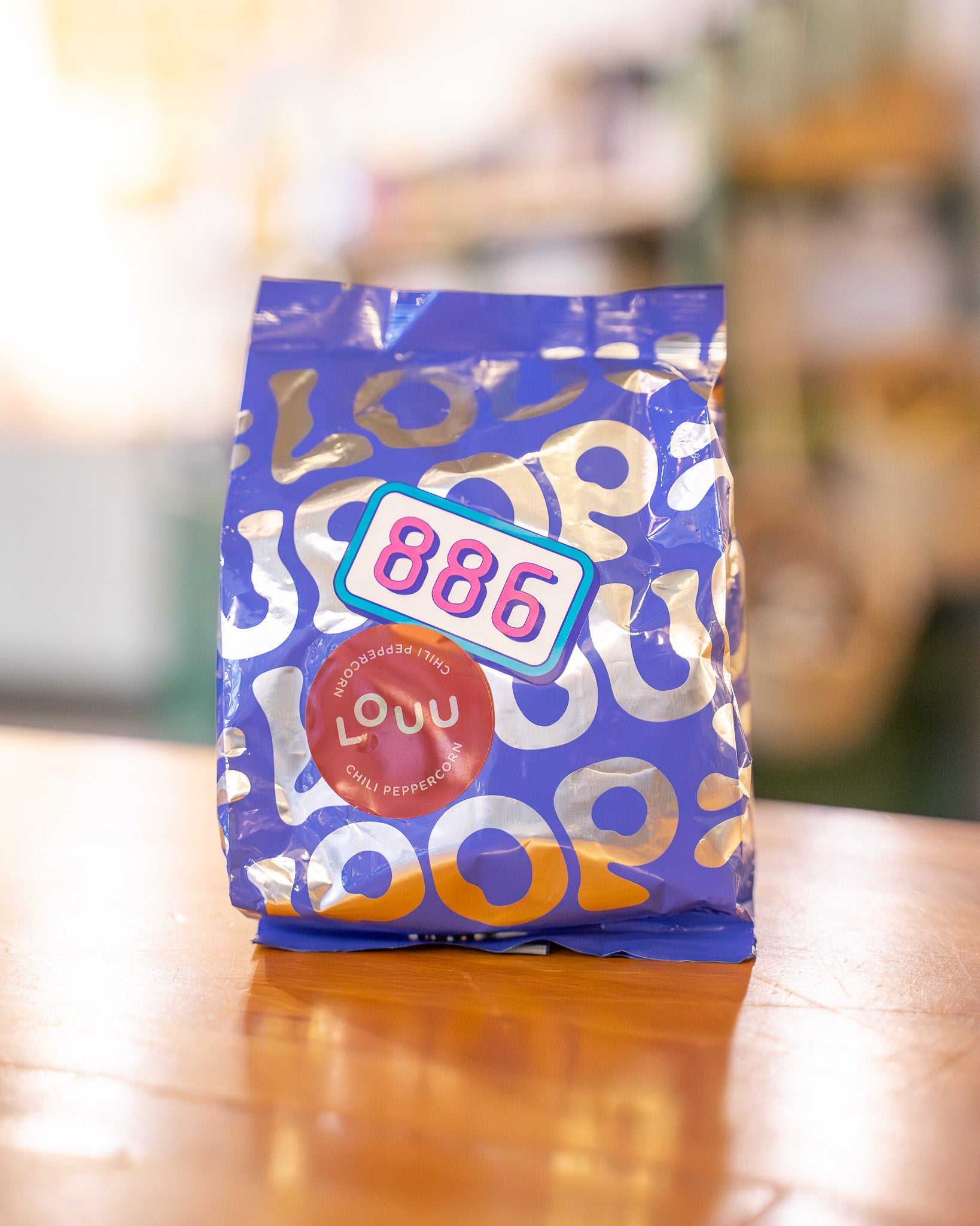 Spicy, garlicky popcorn made with 886 chili sauce. Perfect for movie nights or sharing with friends. Made in Taiwan in partnership with Louu Food.