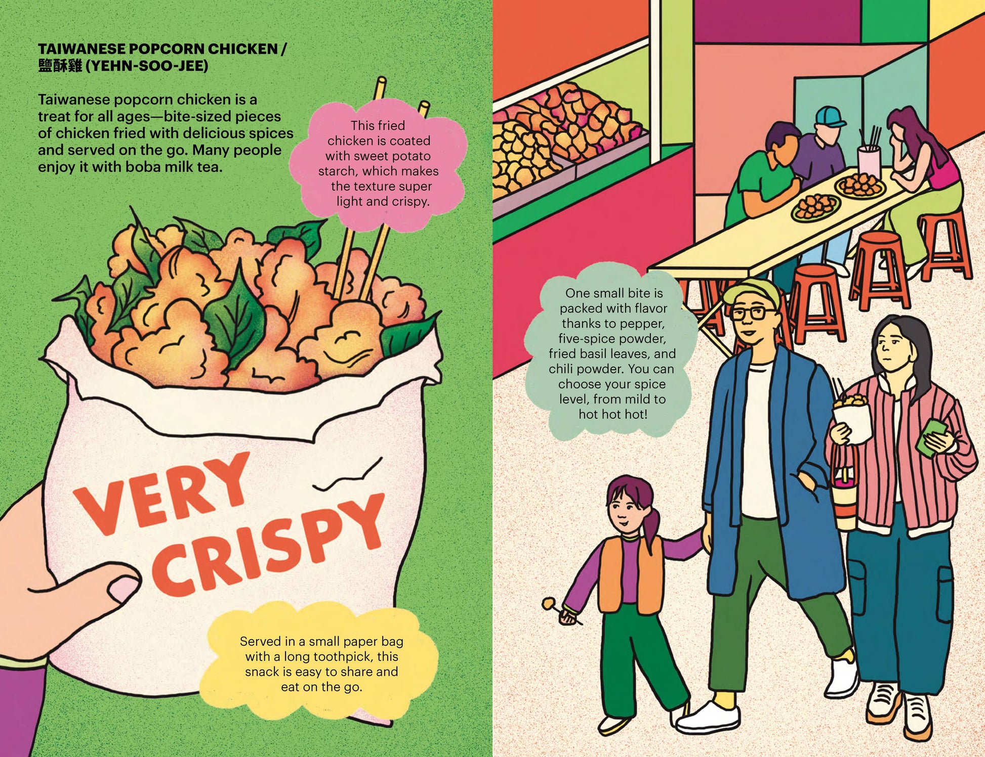 Dive into the delicious world of Taiwanese cuisine with this beautifully illustrated guide! Perfect for food lovers and curious kids alike, it features mouth-watering visuals, fun cultural facts, and three easy recipes to try at home. A playful celebration of Taiwanese flavors and traditions that makes a fantastic gift for foodies of all ages.